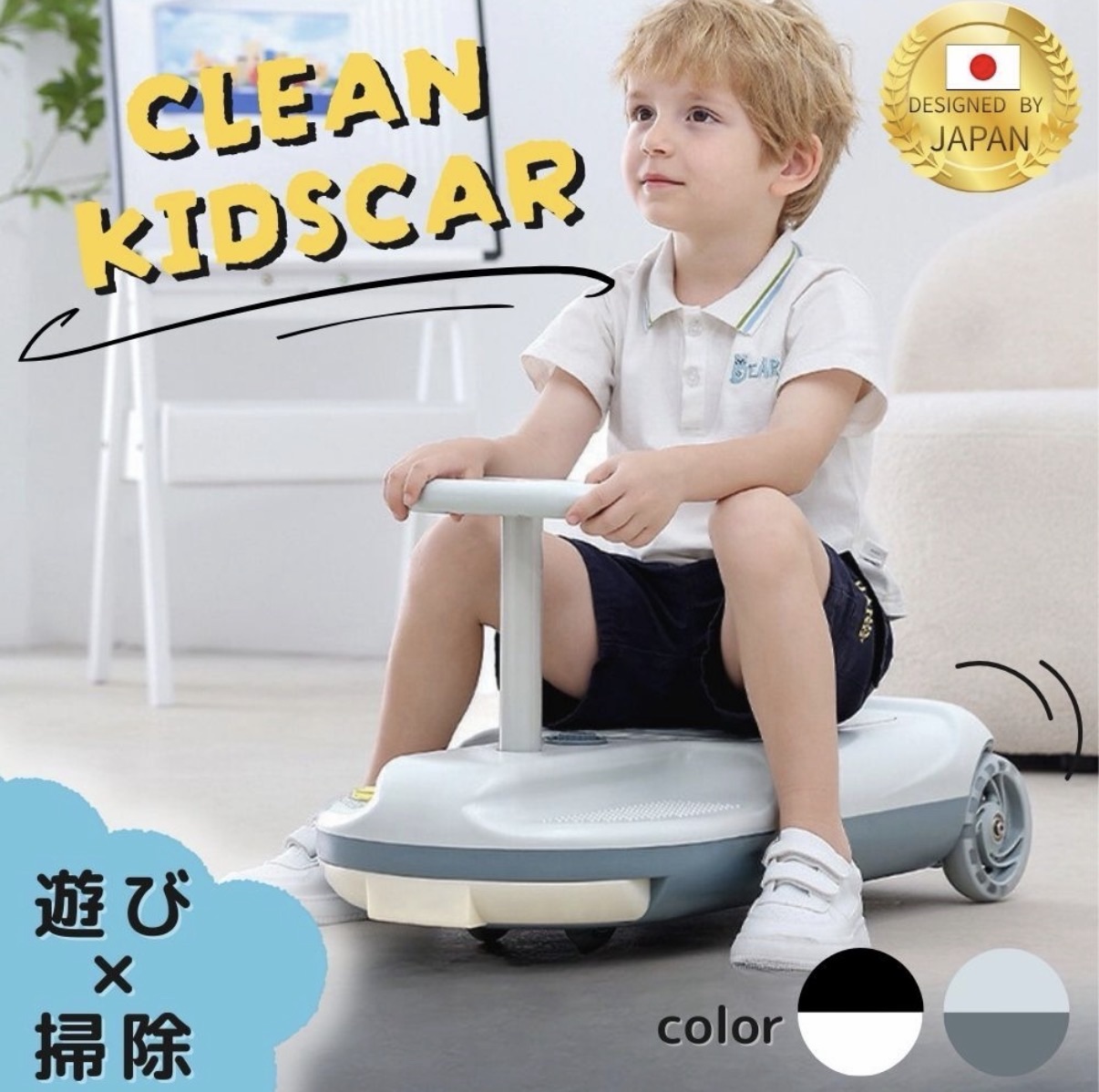 クリーン キッズ カー 掃除しながら遊べる 電動カー ゴーカート 拭き掃除 床掃除 SNSで話題 PSE認証 アダプター採用 スピード調節機能 LEDライト アイボリー グレー 大 掃除 室内 室外 大人 子供 3歳〜 4歳 5歳 6歳 小学生 誕生日 新生活 プレゼント 2026 送料無料